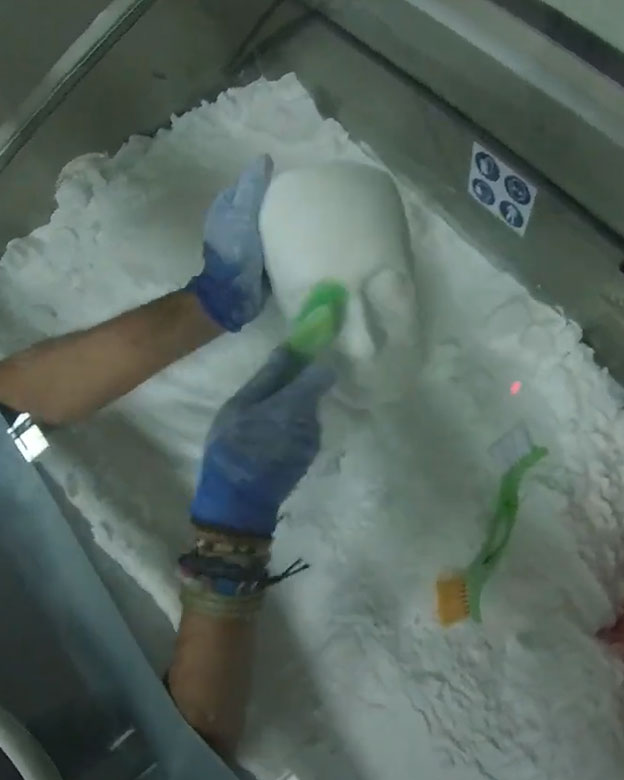 le riproduzioni fisiche in 3D delle opere d’arte (e/o di qualunque altro oggetto), prevedono l’utilizzo di stampanti 3D basate sul concetto innovativo dell’additive manufacturing. Sono impiegate diverse tecnologie a seconda delle caratteristiche del componente da realizzare, sinterizzazione laser (SLS), estrusione filamento (FDM) a resina (Polyjet). Gli oggetti possono subire lavorazioni successive per migliorare ulteriormente la qualità estetica.